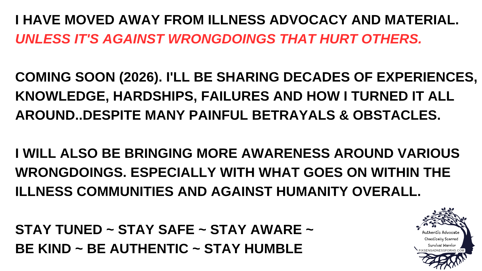 First and foremost, I want to say. I’m not sharing all this with you out of arrogance or ego. Over the years, some within the community have asked for this very information. While I’ve provided scattered replies in the past, I now have my own platform to collect everything (almost) in one place for those who are interested. And being transparent is something I take pride in. I want the community, warriors, and viewers to know that I am knowledgeable in both HS, humanity, chronic illness & wellbeing. And I’m also a Survival WARRIOR. I offer my expertise and personal experiences of living with hidradenitis suppurativa for 47 years, alongside 11 years of multiple debilitating chronic illnesses, & 38 years of advocacy overall. With a plethora of ongoing well-rounded education.